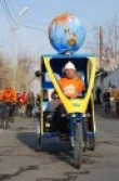 Today is double holiday for "Bicycle+" NGO members. Young drivers of "environmentally friendly cars" are celebrating Environment Day as well as NGO's official website opening.