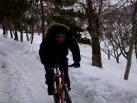 We are going to acquire skills and enjoy riding a bike in the snow. |